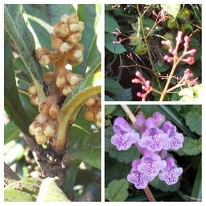 連投失礼します❗️ 散歩にて~~👩🦯 ムラサキケマンがもう咲いてました🤩 シロバナタンポポ サネカズラ ツワブキ ナナフシもいました❗️ チェリーセージホットリップスと 朧月のお子ちゃまは うちのコ達🎶