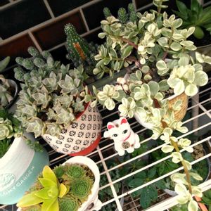 おはようございます☀️ ☆プロリフェラ錦 脇芽が沢山可愛い❤️ 斑入りが魅力的✨✨ ☆株分けした 桃子の舞 ピンク色が増えて来た、 葉はツヤツヤでぷりぷり♡
