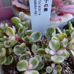 ポーチュラカリア。。。 桃子の舞。。。 🏷⸒⸒錦の日 お迎えしてから葉が全部落ちてしまい、ここまで復活出来ました💮 「桃子の舞」と名札📛が付いていましたが、雅楽の舞ですかね…🤔 葉っぱがピンクに色付いて、とっても可愛らしくなっています( ˶ ̇ᵕ ̇˶)💕💕 心配していた夏越しもでき、次は冬越しの準備です(๑' '๑)و