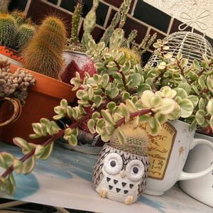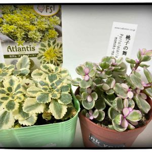きのうは、ホームセンターから いろいろお迎えしました😊 花の寄せ植え用に1鉢と思ってたのに1鉢で終わるわけがない😆 今日の写真📷は、その中から お迎えした多肉ちゃんを、ホームセンターの写真と共に。 ⬜︎の中のコをお迎えしました💕 右↗️ レズリーちゃん。 色に惹かれました👍 左↖️ 桃子の舞ちゃん。 ポーチュラカリア属だそうな。ピンクの花が咲くけど、日本で咲くことはめったにないらしい😲 寒さに弱いらしいので、冬は室内組かな。