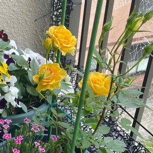お久しぶりです💦 咲き方がイマイチですがミニ🌹が咲いてくれました♫