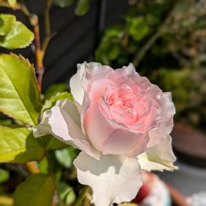 「慣れてきた?」 我が家にやって来たのが土曜日 今日で一週間になります🌹 暗いダンボールでの移動に加え 突然の植え替えで疲れたよね。 4.5号鉢では窮屈そうだったので ちょっと大きな6号鉢に引越し!! 段々と慣れたか今朝は元気(?)を 取り戻した気がします。