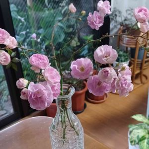 おはようございます 今日のお花の『バラ』 先月✂️してたミニ薔薇さん 蕾もみな咲いていました🌹 北側の部屋、本箱置いてあるので少し窓開けて気温低くしているせいかお花の劣化が遅くいつまでも綺麗に咲いています 偶に食卓テーブルに╰(*´︶`*)╯♡ とっても心休まりますね〜 今日も素敵な日になります様に〜૮₍˶ᵔ ᵕ ᵔ˶₎ა🎶❣️