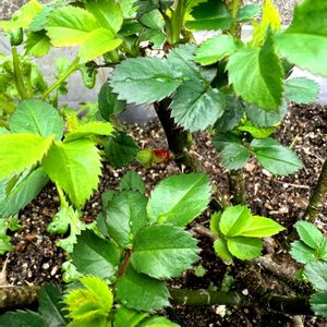 ミニバラNo.3 蕾2つほど発見 雨にあたって 根をしっかりのばしたのか 元気そう 咲くのが待ち遠しい🎵