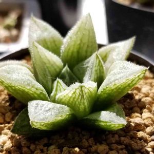おはようございます😊昨日から打って変わって寒い朝☔です。最高気温が10℃位下がるそう💦冬からずっと気温の振れ幅が大きいような感じがしています。 picはハオルチア55号の🌵細雪🌵小型ですが形が整っている可愛い仔です💘