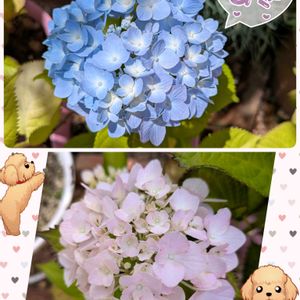 おはよーございます☀ 白雪姫の森~ 今日は『ウエディングブーケ』🤭︎💕︎︎ 白雪姫の森では今、10種類11株のアジサイが咲いてます🤗💓 このウエディングブーケだけは鉢植えと地植え2株あるの🥰☝ ⬆️鉢植えの親株で、毎年石灰でph調整してピンクに咲かせてます🩷 ⬇️地植えしてるのは挿し木からの株で、何もしてないからブルー~薄紫に咲いてます🩵💙💜 つまり、うちの庭の土は酸性って事をアジサイに教えてもろたꉂꉂ🤭 初めて買ったガクアジサイで、ドライフラワーにしても可愛いんです*.(๓´͈ ˘ `͈๓).* 今日の札幌は34℃予報❣️ 帯広は40℃予報‼️ 道内色んな所でクールシェルターやってて、自由に涼める様になってるわ☝️😉 皆さん、熱中症に気を付けてね⚠️