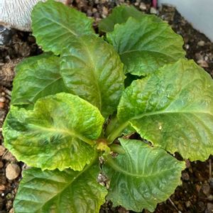 問題 コレは何の葉っぱでしょう? チンゲンサイ🥬? ブー ✖️ 外れです ハクサイ? 外れです 9ヶ月前2/1投稿のあの可愛いジュリアンです。 ひとつだけすごく大きくて勢いがよかったから多分その子です 夏の間、日陰に置いていたら夏越しして元気に復活中です😆😆嬉しい💖 咲いてくれるかなぁ〜💕💓