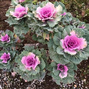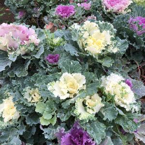 踊り葉牡丹(オドリハボタン) 今年は、消毒の効果なく青虫との 戦いでした。٩(๑`ȏ´๑)۶ 緑の部分の葉が大分やられました。💦😔 地植えですので、雪が降ったら、全部切ってお正月用に室内に飾ります。 ヾ(*´∀`*)ノ (横からと正面からのpicです)