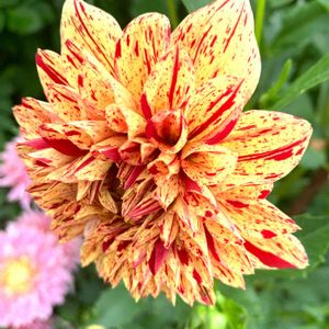 おはよう御座います✨ 斑入りのダリアさんも 咲きました🧡💚💛🍃 今週も元気に( •̀ᴗ•́ )و ̑̑ ヨロシクお願いします♪
