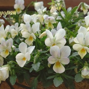 ビオラ三銃士(?)寄せ植え 左から… 🌟アピスグレイス 🌟ポンゼヴェールcoco 🌟ファルファリア