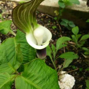 地エビネと一緒に寄せ植えられていた、吉野のテンナンショウ属ユキモチソウ 3年咲き続け、2年咲かず💔杉の鉢が割れたのをきっかけに、もう消滅させてしまったと思って庭の中央に作った極小畑スペースに土を棄てたら、次の年何故か咲いてて驚いた😲‼ 完全無農薬放置庭だから何が出てもおかしく無いのだけれど(笑) 今年も出たら移動してやらねば…