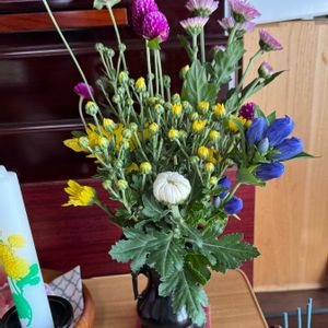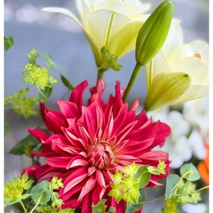 こんにちは♪ お盆で飾っていたお花♡ 蕾が咲いて綺麗✨ コンパクトにして玄関へ〜