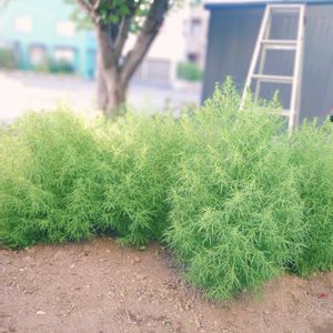 こぼれ種から生えてきたコキア…今年は、発芽した芽を間引きもせずにほぼ放置したところ、モフモフの森の生垣状態に…(✽ ゚д゚ ✽)