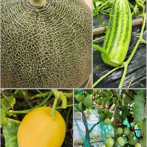 *お盆のお供え* クラリスメロン🍈をカット、2kg秤がエラーです。 2.2kgありました。 今日からお盆、御先祖様達のお供えにします。🍈🍇 クラリスメロン🍈、シマウリ、マクワウリ、ブドウ🍇