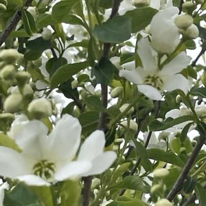 おはようございます😊 夜中また☔が降ったみたいです。 今はまだ曇っていますが、今日も気温が上がり良いお天気になりそうです☀️ 今日のお花リキュウバイ(利休梅)❇️🤍✨❇️ 去年3月に行ったなばなの里で咲いていました🤗