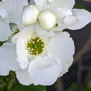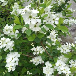 出先で出会ったお花 バイカウツギで合ってるかなぁ〜 追伸 「リキュウバイ」と言うようです。 別名ウメザキウツギ・バイカウツギ 真っ白とっても素敵でした