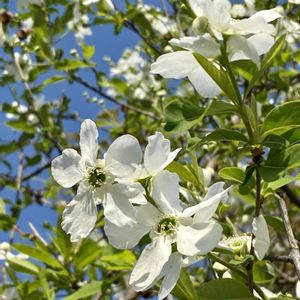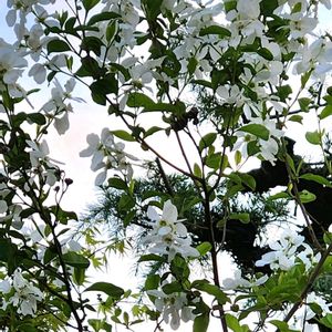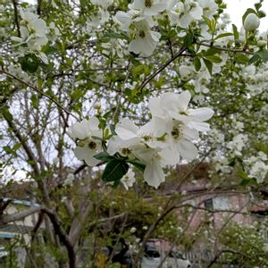 4月24日 今日のお花 *:.。..。.リキュウバイ .。.:*・ 別名 バイカシモツケ 開花期 4〜5月 樹高 3〜4m 明治時代に渡来した。 服部緑地都市緑化植物園 2025.4/10撮影 🏷️清楚な花 🏷️空を見上げて