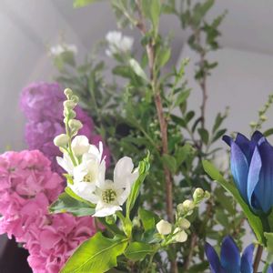 🏷️月曜日は玄関の花 🏷️月曜日は元気色の花 リキュウバイ🤍🌿 八重咲きストック💜🧡🌿 先日…ファーマーズマーケットで…🙋🏻♀️😉🤗🤍🌿🤍🤍🌿🩷💜🌱🌿!! 美しい〜リキュウバイ に逢えました〜大好きに ✨️✨️🤍🤍🌿🤍🤍🌿🙆🏻♀️ 💜🩷ストックも綺麗🤗 朝は9℃…昼は20℃くらい…春らしい一日に…🙋🏻♀️🤗週明け月曜日…♫ 🌸💜🤍🤍🌿🤍🤍🌿 今週も4649ねぇ(*^^*)💐 😊!!✌️🌸💮🩷🙆🏻♀️💜💞