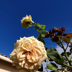 午後3時を過ぎて、ポツポツ雨☔が降ってきました 我が家の薔薇 💚エメラルドアイル🧡 あまり条件の良い場所ではないですが今年も開花🤗✨✨✨