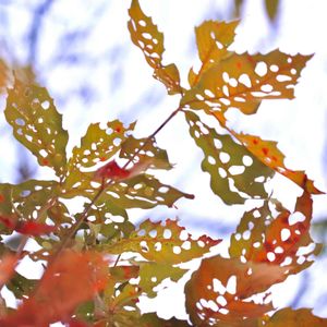 見上げてみるとこんな葉っぱが🍁 何の木か分からず‥🌳 しかもこの葉っぱは元々❓ それとも誰かにかじられた❓🤔