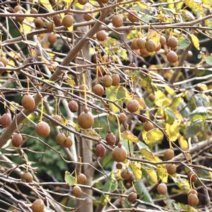 ハンカチの木の実✨✨ たくさんぶら下がってました😊 見た目大きさもキウイ🥝みたいですが 中の核はすっごく硬いそうです👀