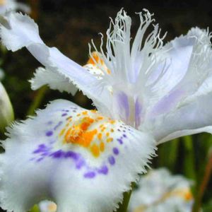 2020年3月4日今日のお花『シャガ』です。 【シャガ】 中国原産、アヤメ科常緑多年草。 日本各地の低地や人里近くの湿った森林に普通に見られる。 春に茎を斜めに伸ばして、その先に白地に青い斑点が入る花を多数咲かせます。長い地下茎を伸ばし、その先に芽をつくってふえるので、大きな群落をつくるのが普通です。 草丈:30~50cm、開花期:4月~5月 花色:白・青 北九州市立白野江植物公園にて