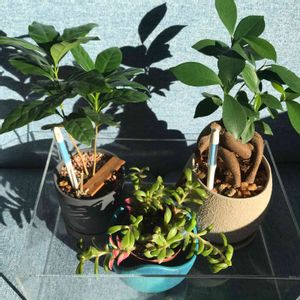 今朝の日光浴🌞 ガジュマルちゃんの新芽がどんどん伸びてきて良き☺️ コーヒーちゃんはガジュくんに比べると成長遅めだけど、じわりじわりと新芽が出てきてます☺️ 桜吹雪ちゃんは、猫に折られた脇から新たな新芽が!!生命力すごい😳