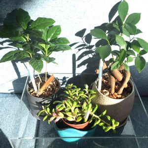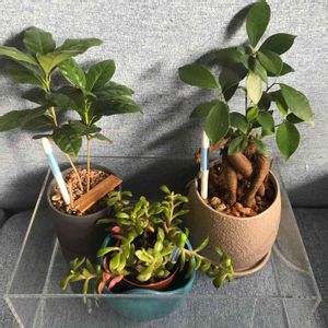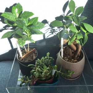 ガジュマルちゃんの成長が早く、どんどん新芽が開いてる😆🌟 コーヒーの木ちゃんはゆっくり成長中☺️ 桜吹雪氏はもっさもっさ成長してて良い😁
