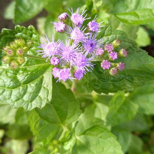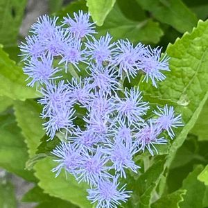 別視点へ・・・ ア ゲ ラ タ ム カッコウアザミでしょうか❓ いえいえ、コレはユーパトリウム。 つまり「セイヨウフジバカマ(西洋藤袴)」なのです。(7月31日に投稿) キク科コノクリニウム属の多年草です。 アゲラタムに酷似しているので【宿根アゲラタム】とも呼びますが、アゲラタムとは全く別の花です。 違いはアゲラタムより背が高くなる事、茎が赤い事以外に分かりません。߹ᯅ߹ では、アゲラタムの花を・・・。