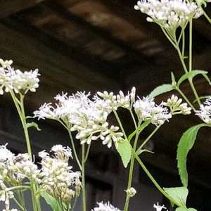 西洋フジバカマ (ユーパトリウム・ブルーミストフラワーとも) 夏の盛りには爽やかなライトグリーンの葉っぱをどんどん伸ばして 夏が翳るころから咲き始めます