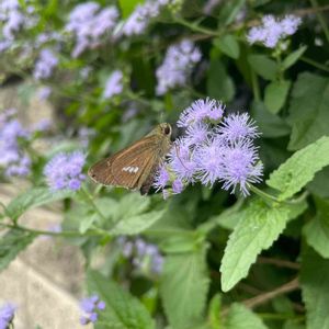 ボランティアの花壇に 咲いていた花💜 アゲラタムかと思ってたら…… 和名は「西洋フジバカマ」 英名は「ミストフラワー(Mist flower)」 というらしいです。 フジバカマ、ユーパトリウム、 ヒヨドリソウ… 他色々、 似た花や種類がいっぱいで ややこしい~です😅😥