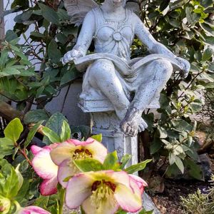 クリスマスローズの花と 読書する妖精 とても素敵でした♪ 別府市内の花壇