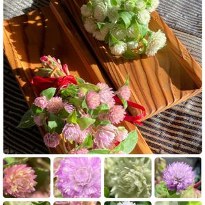 一年中 紅 ---に染まったこの俺を ↖️千日紅 白 ↗️千日紅 ピンク ⬇️ えっと🤔