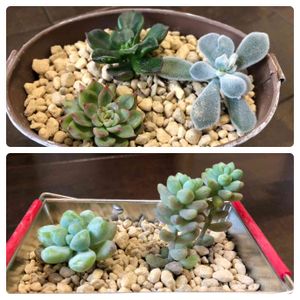 備忘録_φ(・_・ はじめての寄せ植え♡ (どきどき💓) これでいいのかな? エケベリア属とセダム属を分けて植えてみました🤗