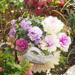 うちでは、ちょっとお高いパンジーさんの寄植えです😊割と華やかです💕 パンジー紫式部は順調に育っているので、ふりふりタイプのパルムディール2色の花数がもう少し増えて欲しいなぁ❣️