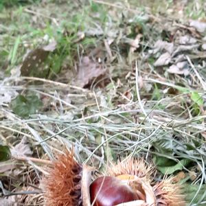 栗🌰落ちてました。 初物です。 (昨日撮影) 🌰🌰🌰🌰🌰🌰🌰つ 拾いました。 落ちたら虫や動物たちと競走です。 早い者勝ちです。