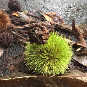 早朝5時、いつもの山の麓にて。栗の赤ちゃんは、この前撮影した時よりも少~し成長していました🌰