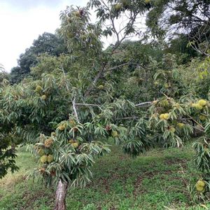 10月22日 今日のお花🌸クリ🌰 見つけるのはいつも、イガイガが出来上がってから💦 お花を見たことがないのですが、皆さんの投稿されたお花を見ると、 『あー、知ってる気がする~🤔』 と、思うお花🌸 写真はもちろん、イガイガしかありません。 撮っていたのが6月なんですけど、そんなに早くイガイガしてるものなのか調べると、早いと8月には収穫出来るようになるとか。。。ということは、花が咲くのはかなり早い時期?? 木の場所は覚えているので、来年はパトロール強化ですね😅 2021.9.20 撮影📷 フェンス向こうの崖の栗🌰