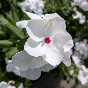 ᰔᩚ ᥫᩣ アメリカンホワイト マトリカリア ニチニチソウ ジャスミンホワイトプリンセス コバノランタナ 白い花が秋の空の下〰️ キラキラしています✨✨✨
