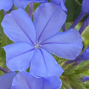 ᰔᩚ ᥫᩣ ルリマツリ また蕾から開花してきました 開く前のくるくるも案外可愛い😆 今日はあいにくの曇り空 ブルーウイング昨日の空です🦋