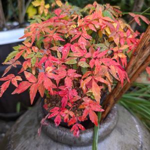 玄関先の盆栽のハゼが紅葉しました🍁