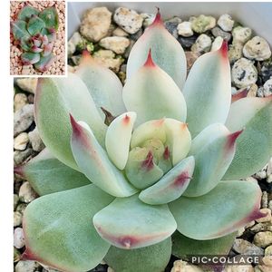 左 ふっくら娘(福だるま) 右 福だるま錦 いつも青白いふっくら娘がピンクになってる💖💖 これは紅葉しているってことだよね🤔 反対に福だるま錦はピンクだったのにすっかり紅葉が覚めて真っ白になってる🤣 同じ種類なのに紅葉の時期が違うの❓🤔