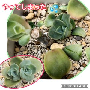 みどりのまとめで成長記録を付けていた ラブリーローズ錦ちゃん 胴切りして可愛い双子ちゃんが誕生していたのに… 私の不注意で無惨な姿になってしまった😰 奇跡的に1つだけ赤ちゃんが生き残ってくれた😊 発根してくれると良いなぁ🙏 繁殖木は無事だったのは不幸中の幸い🤗 落ちた葉は葉挿しにしてみよう🥺