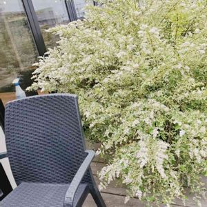 おはようございます 久し振りにパートに出るようになって行動範囲もちょっと広くなり、出会う植物も珍しく新鮮な気持ち💕 最近お気に入りのパン屋さんのテラスに咲いてるこの白い花 甘い香りがして、コーヒータイムは、暫し無になりますが 花の名前が解りません。どなたか教えて下さい。 葉っぱは斑入りです。 いつもありがとうございます💕👋😄 .YUMIKOさんにシルバーブリッベッドと、おしえていただきました💕 ありがと~