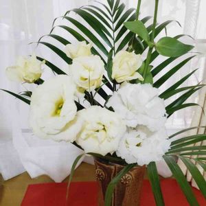 おはようございます🍀 近所にテイクアウトのお店がオープンされて二日経ってから覗いて終わりがけのお花を頂きました。 白いトルコ桔梗が リビングで涼しそうです。 いつもありがとうございます💞🌸🌸🌸🌸🌸