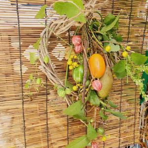 すっかり冷えて秋の空気ですね。 麦茶から熱い日本茶の朝です。 久し振りの投稿です。 アケビ、烏瓜、お茶の実、沖縄スズメウリ、ツルウメドキ いつの間にか細いツルか庭にもはえてちゃいなまーぶる みたいな白くかわいいスズメウリも、庭の仲間入りです。 気温差に体調管理 されていい日になりますように🌾🍂🍂🍵💕