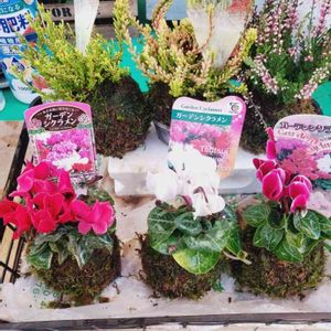 今日の庭遊びです。 早くもガーデンシクラメンが店頭を華やかに飾る季節になりましたね。 早速、カルーナも一緒に苔玉で遊びました🎵 シクラメン270円 カルーナは 三個買うと割引してくれて一つ170円 これからの季節気が滅入った時もこんな遊びすると元気が出ます いつもありがとうございます(*^^*) 今日もお疲れさまでした🎵