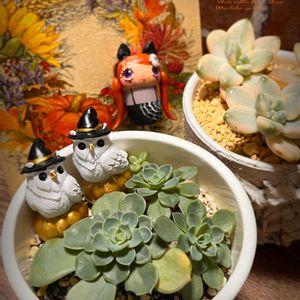 フクロウ祭🏷️ 幸せを呼ぶフクロウ祭り🏷️ 毎月29日は勝手に七福神の日🏷️ 2のつく日は斑入りの日🏷️ ハロウィン🏷️ ハロウィン月間🏷️ ありがたハッピー❤︎100均🏷️ などで投稿させて頂きます🦉💕 なんとか夏越しした七福神 夏よりは少し育ってきました この調子でこれから お正月に向けて育って〜🙏 七福神らしく 丸い形になってほしいです 今月最後の斑入りは 少し前にお迎えした ティデュバンス錦 植えてから下の葉が数枚 ジュれてしまい取り除きました ハロウィンのフクロウは DAISOで出会いました 多肉に合わせやすいサイズです❤︎