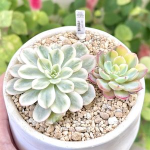 『七福美尼錦』覆輪斑をお迎えしました♪ 片寄った斑入りはオマケでいただきました。 キレイな覆輪斑を見ると、ついつい斑入り多肉集めしてしまう(^^ゞ