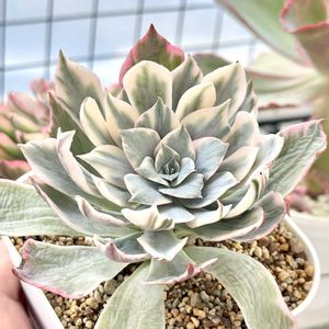 新品種『アルバニー』です。 『アルバニ』とも表記されていたりします^^; よーく見ると薄く縦斑入り。 たまに『アルバニー錦』と表記されている事もありますが… 元々、こうした斑入りの品種らしいです。